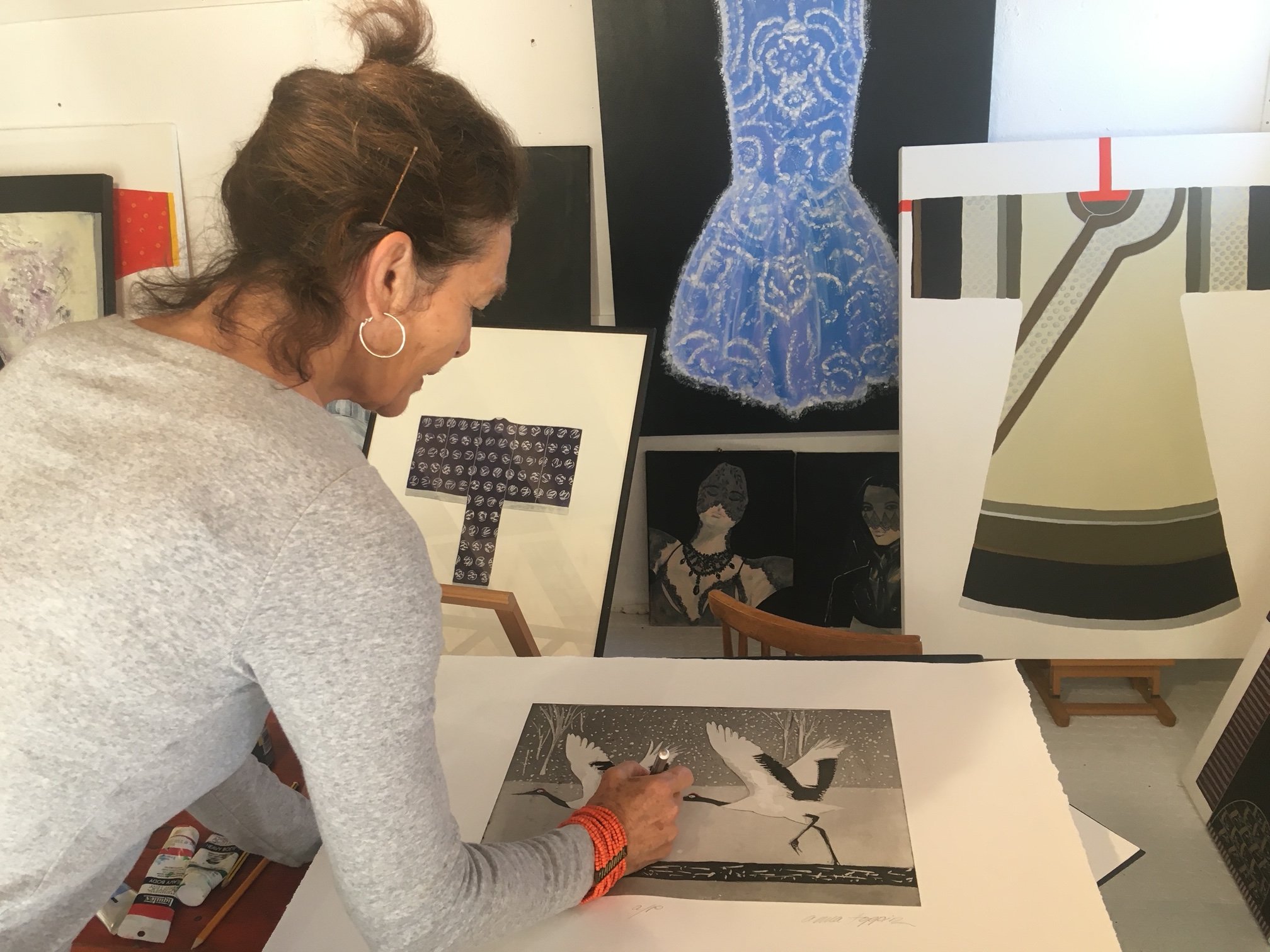 Anna Toppin is an artist and former set designer for ITV, specialising in decorative etchings and paintings influenced by Japanese aesthetics and costume.
